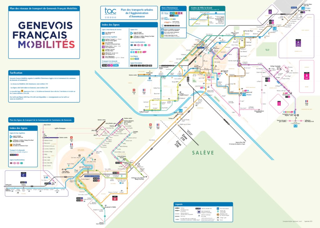 Voir la carte des réseaux de transport Genevois français Mobilités.